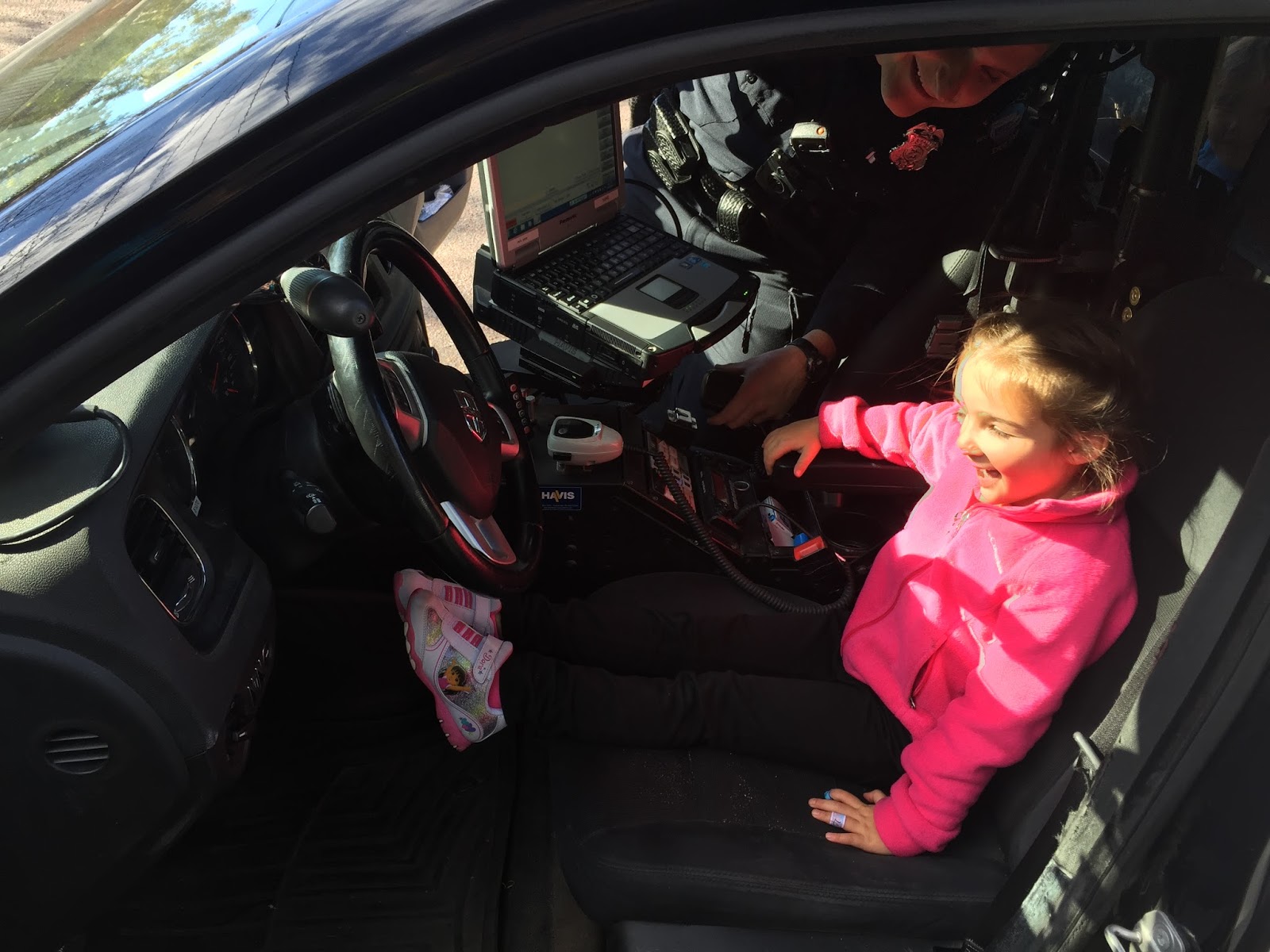 Cora's uncle, Officer Kerfeld, paid us a visit and taught the kids about safety, about the law, how he helps to protect us, and about some of his duties as a police officer. He even let us take a tour of his patrol car!: